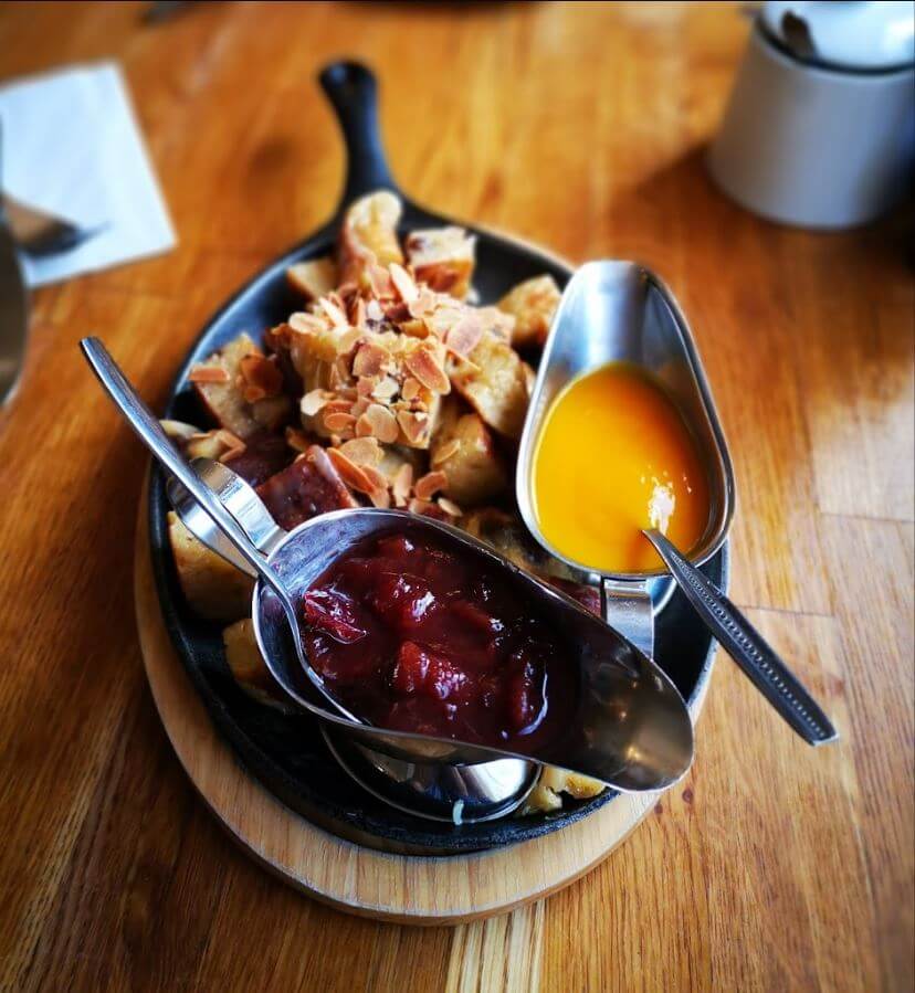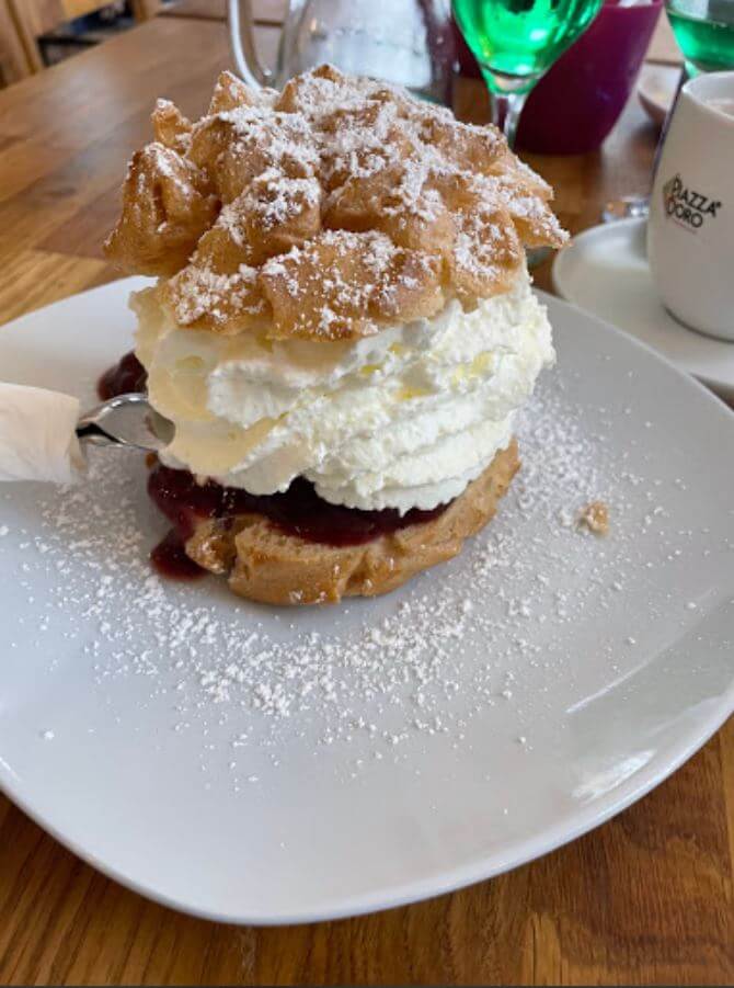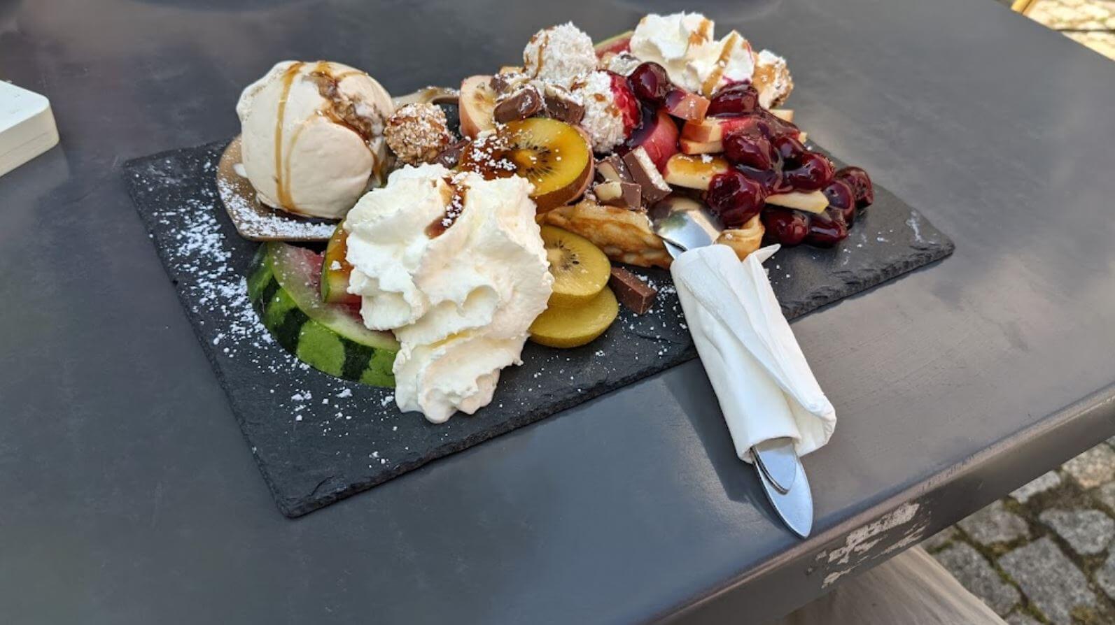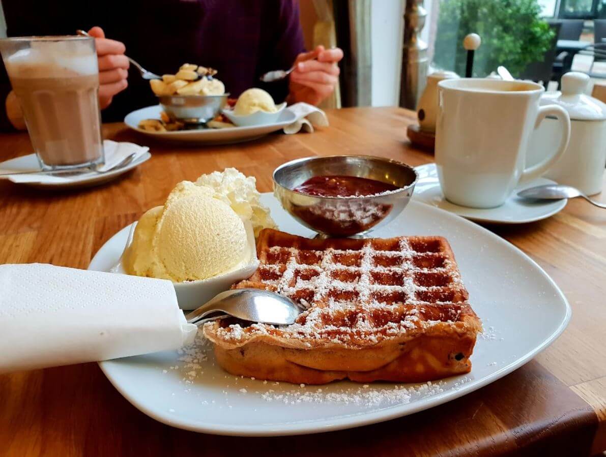 Da Waffeln und warme Speisen an zwei unterschiedlichen Posten zubereitet werden können diese nicht immer zu gleichen Zeiten serviert werden.
